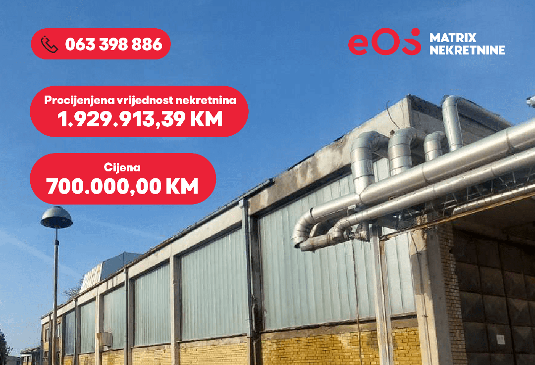Pozivamo sve zainteresirane fizičke i pravne odobe da iskažu interes za kupovinu industrijskog kompleksa smještenog u centralnoj zoni Orašja. Prodaja nekretnine izvršit će se u okviru sudskog postupka koji se vodi pred Općinskim sudom u Orašju.